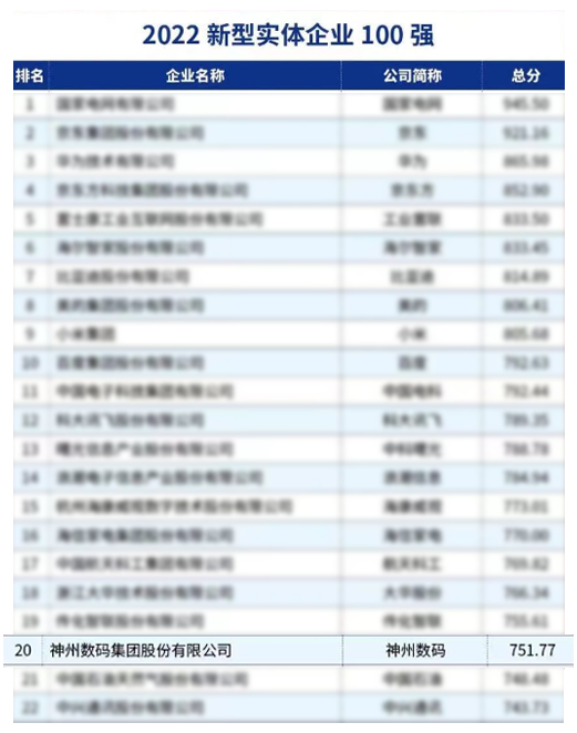 “2022新型实体企业100强”榜单是中国企业评价协会以实体经济为着眼点,结合新型实体企业的发展特征和新趋势所评选出的榜单。该榜单旨在探究“数字经济与实体经济融合创新”的方向与趋势,挖掘实体经济新增长点,树立实体经济高质量发展标杆。
